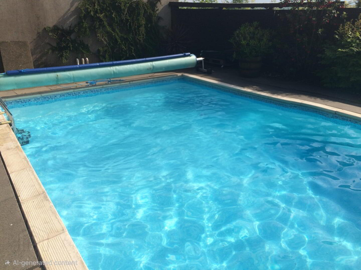 Pool: Completely enclosed outdoor pool with wooden changing room.